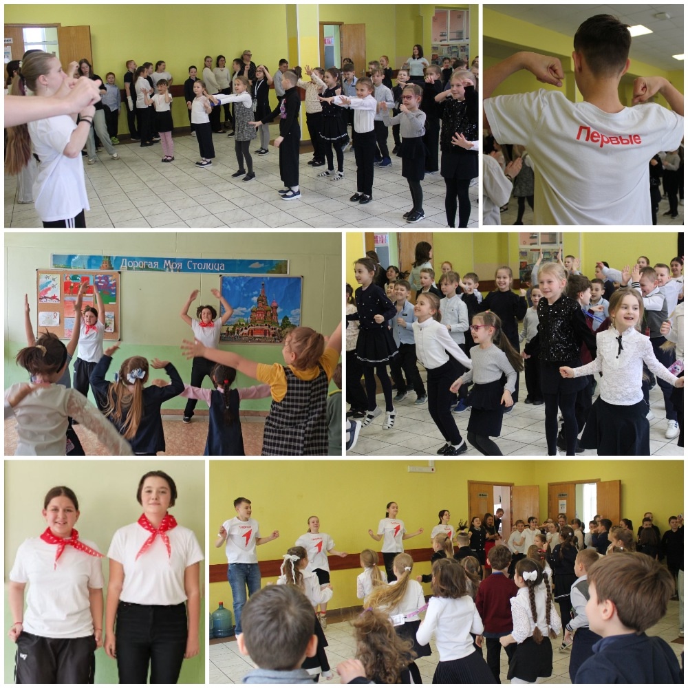 Школа наполняется бодростью и позитивом, когда за дело берутся «Первые». Они регулярно радуют младших школьников приятными сюрпризами. Сегодня ученики первых классов собрались вместе, чтобы начать день с веселой зарядки.
